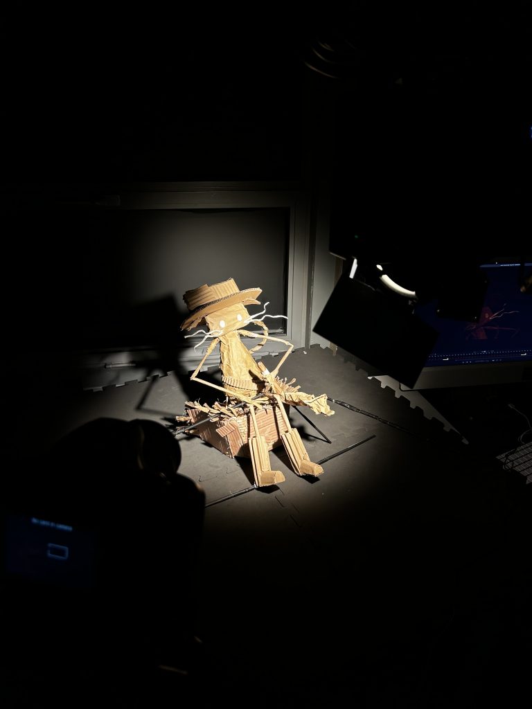 Here are some images as well as the clips of the animated tests we did for El Cato the main aim of this was to familiarise ourselves with using the cardboard puppet but also to understand how we could work well as a team, what techniques worked best and what issued we faced so we wouldn’t have to go through it again when we actually started filming. One particular issue we faced was that we thought we’d be fine just moving the cats limbs with no real plan but it wasn’t very smooth so we tried drawing out arcs on dragon frame to help guide us and that worked much better, it really made the animation look smoother. As a group I think we worked well in pointing out issues we noticed, we weren’t best as explaining why things were problems however I do think it was because its a bit difficult to get used to using the right terms when describing problems or ideas that we had learnt in jess’s rotation.