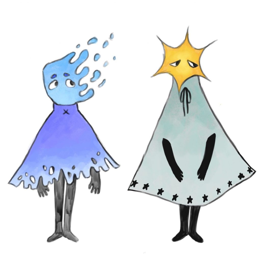 For Aether and Starlight we wanted to make sure their designs didn’t feel too similar so Rhianna experimented with different cape types some spiky some more rounded but we felt that the spiky designs didn’t reflect starlight’s character but we ended up coming to this long triangle poncho/cloak that had arm pockets in the front which I think helped show starlight’s shy body language. There weren’t as many changes to Aether’s design mainly Rhianna experimented with aether’s facial features deciding that aether would not have a mouth because they felt it would be interesting to have a character that could express themselves so well and emotionally without saying anything which I definitely agree with and helped us focus on the characters actions and eyes to tell the story.