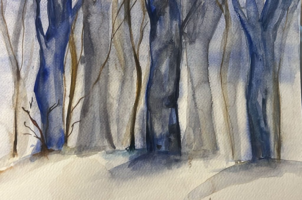 Over the winter holidays Esther took charge of the backgrounds constantly coming back to us for feedback on the colours and the depth in the scenes. We went with watercolour because the texture added to this storytelling/fairytale look which was what we were going for with our story. I also think that watercolour backgrounds helped ground the fog texture as that was on paper too and would not stick out too much.